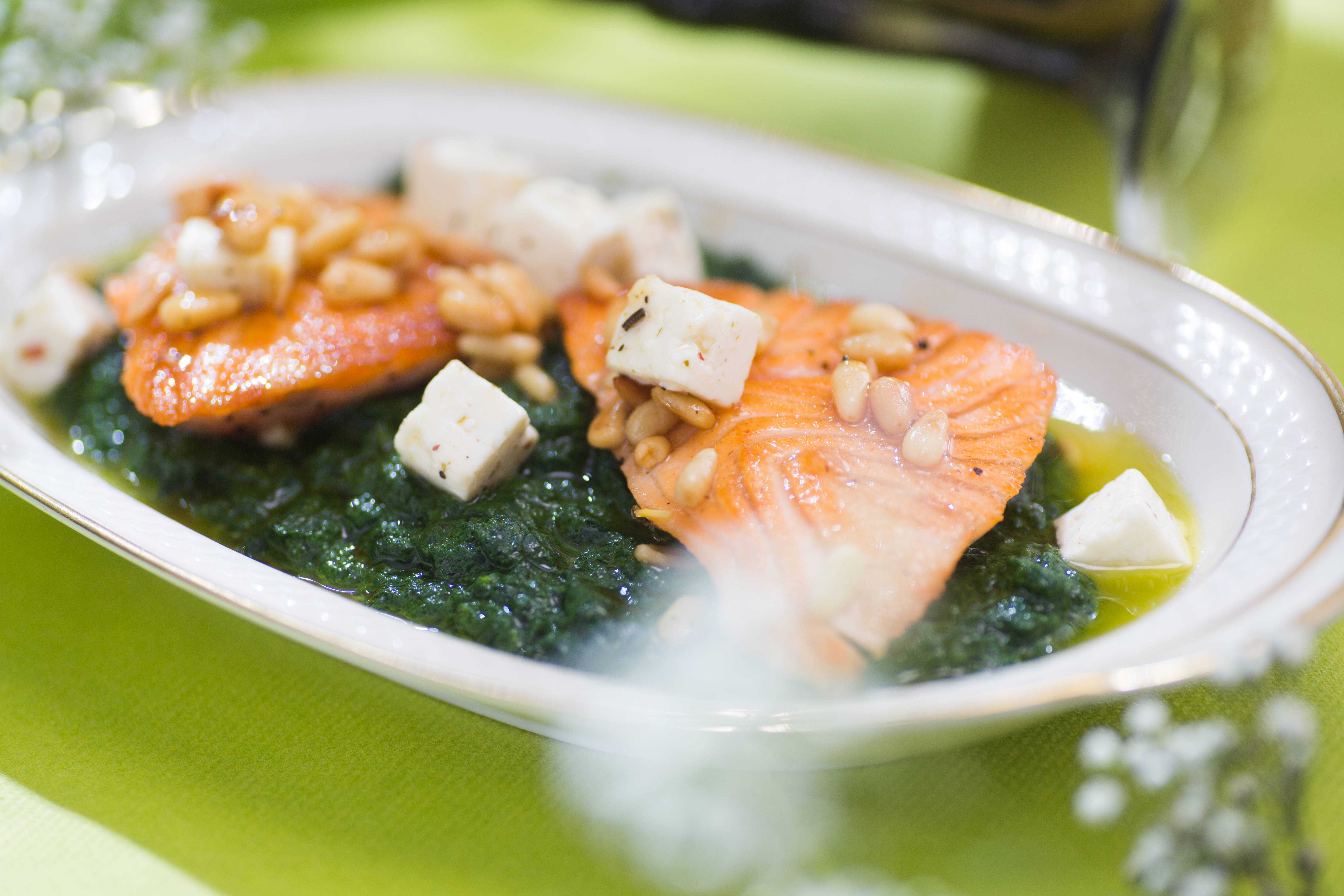 Salmon with spinach and feta cheese