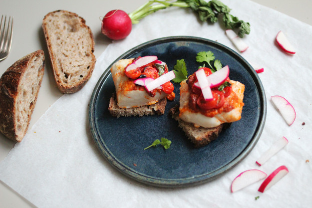 2. Ovnsbakt torsk med rød pesto og tomat er smak av luksus i all sin enkelhet. Du deler torsk i fire like store biter og topper dem med en blanding av rød pesto og cherrytomater før middagen bakes i ovnen og smakene får satt seg. Også her kan du velge mellom å servere fiskestykkene på grovbrød, eller sammen med tilbehør, som potet, pasta eller en grønn salat.