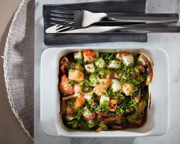3. Uansett om du er kjent med sellerirot eller ei – denne formen er en fabelaktig måte å spise den norske rotgrønnsaken på. Med sin mildt krydrede smak passer sellerirot godt i samspill med både laks og en rekke andre grønnsaker – du kan med andre ord bytte ut ingrediensene i oppskriften med det du skulle brukt opp fra kjøleskapet.