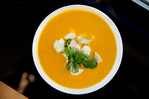 2. Uansett om du feirer Halloween eller ei bør du prøve minst en oppskrift med gresskar mens du fortsatt har muligheten. Det trenger slett ikke være komplisert, det kan faktisk gjøres ganske enkelt – slik som denne nydelige suppen med créme fraîche, appelsin og koriander. Bruk en hvit fisk du liker, for eksempel torsk.