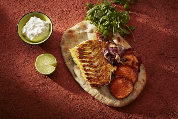 Torsk med karri, søtpotet og nanbrød