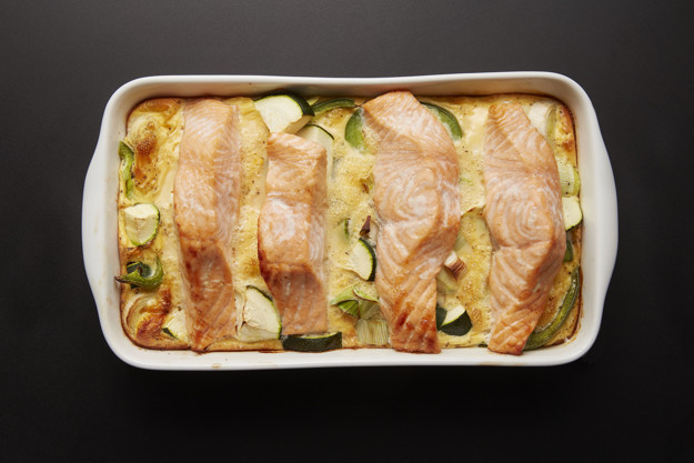 Med frossen fisk i fryseren kan du lage uendelig med varianter av middag i form. Laksegrateng med grønnsaker er kanskje den enkleste varianten av de alle. Glem tining, en haug med oppvask og en lang liste med ingredienser. Her kan du enkelt ta frossen fisk rett i ovnen sammen med grønnsaker og eggestand. Følg oppskriften som den er, eller bruk det du har av grønnsaker og frossen fisk. Alt blir godt med fisk i form!