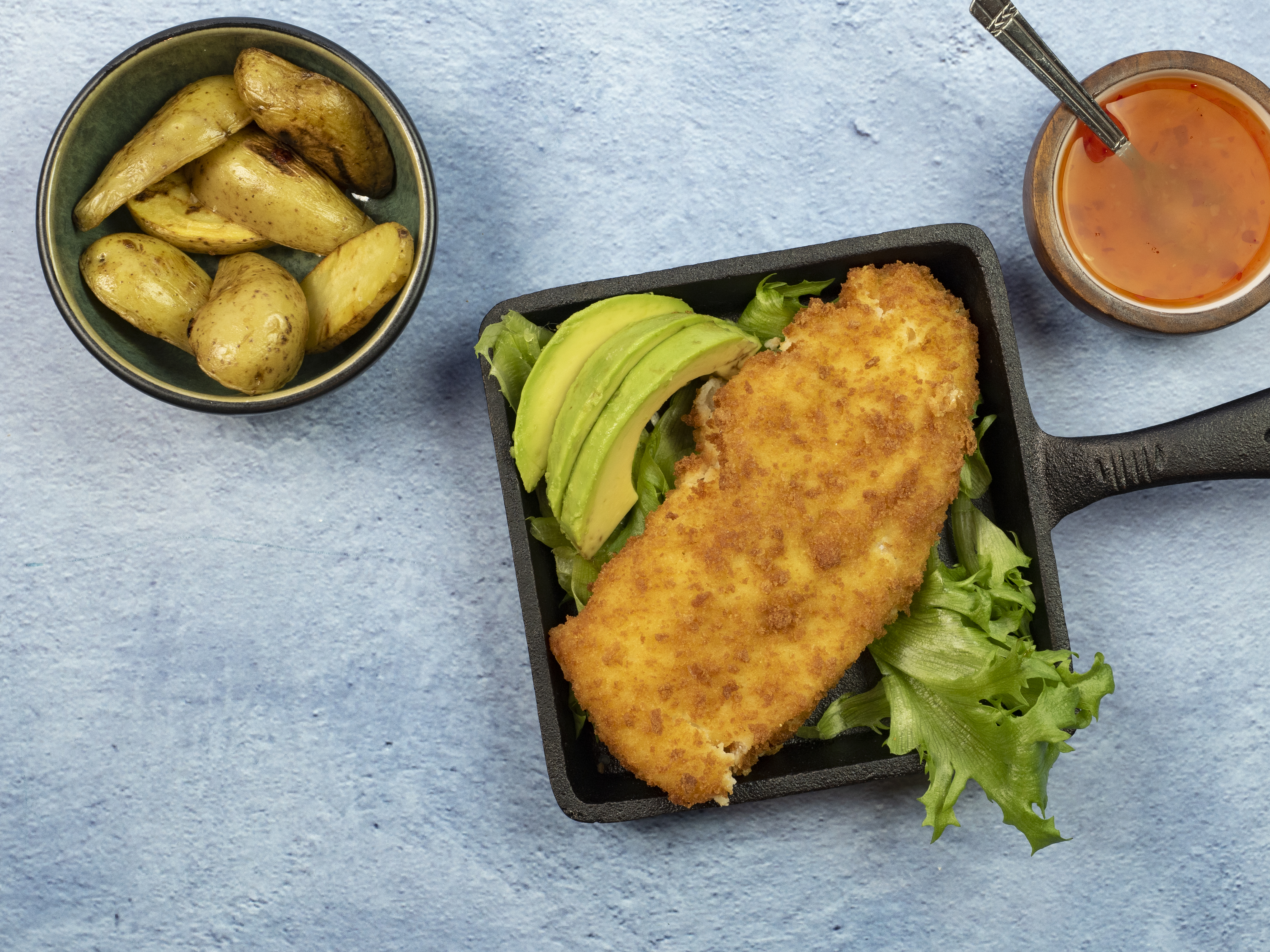 Stekeovn: Forvarm ovnen til 220 °C varmluft. Plasser de dypfryste panerte porsjonene på stekebrett med bakepapir midt i ovnen. Steketid kan variere, men ca. 22-25 min skal holde for å få en sprøbakt porsjon.