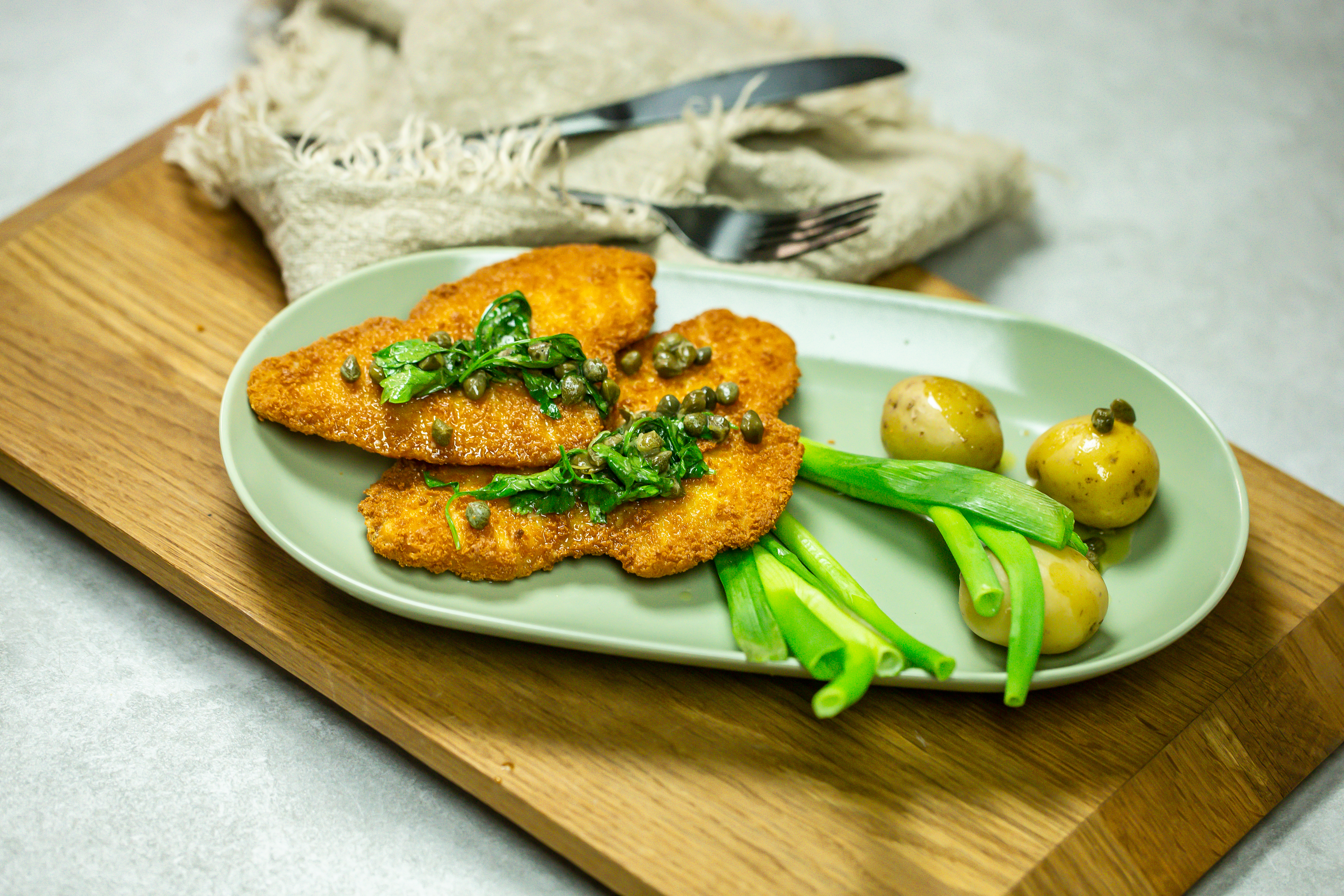 Panert rødspette kan også tilberedes i airfryer. Dersom du har en airfryer som ikke er av den kraftigste sorten er det